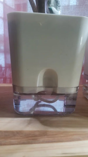 A hidden reservoir stores water while a selfabsorbent cotton rope wicks moisture to the soil. This keeps roots hydrated without daily watering and reduces the risk of overwatering.
